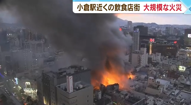 후쿠오카현의 기타규슈시, JR고쿠라역 인근의 번화가에서 큰 불이 발생했습니다. 이 화재는 지역 내 음식점 밀집 지역에서 시작된 것으로 추정되며, 소방대의 노력에도 불구하고 진압까지 상당한 시간이 소요되었습니다.