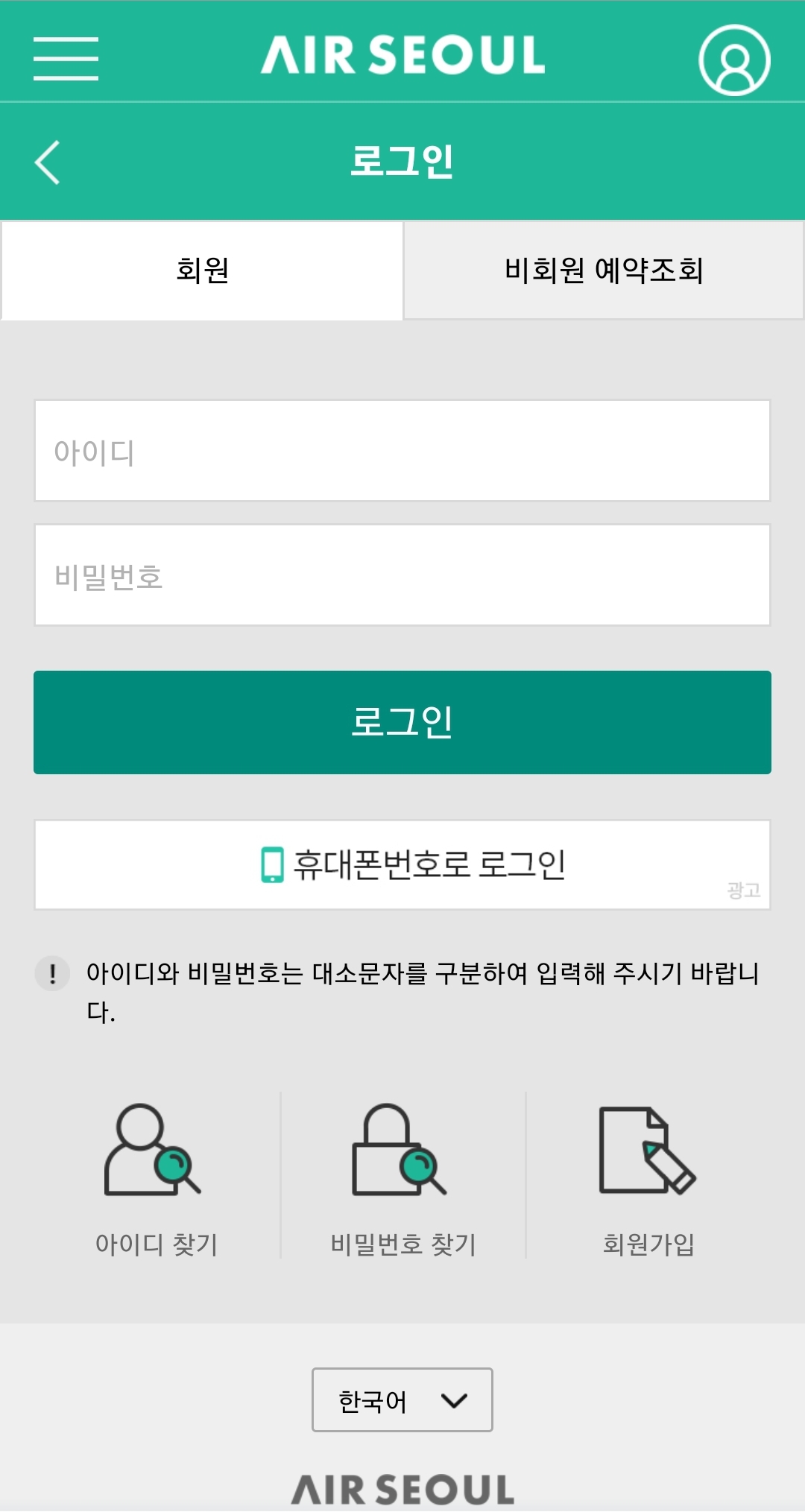 3. 회원인 경우에는 아이디 비밀번호를 넣고 로그인해주세요.
