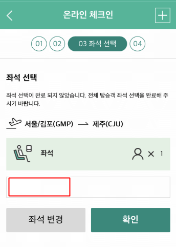5. 반입 금지 물품 목록을 확인하신 후 '좌석 변경'을 클릭하신 후 '확인'을 눌러 좌석을 선택해주세요. 좌석을 선택했으면 온라인 체크인 절차를 완료해주세요