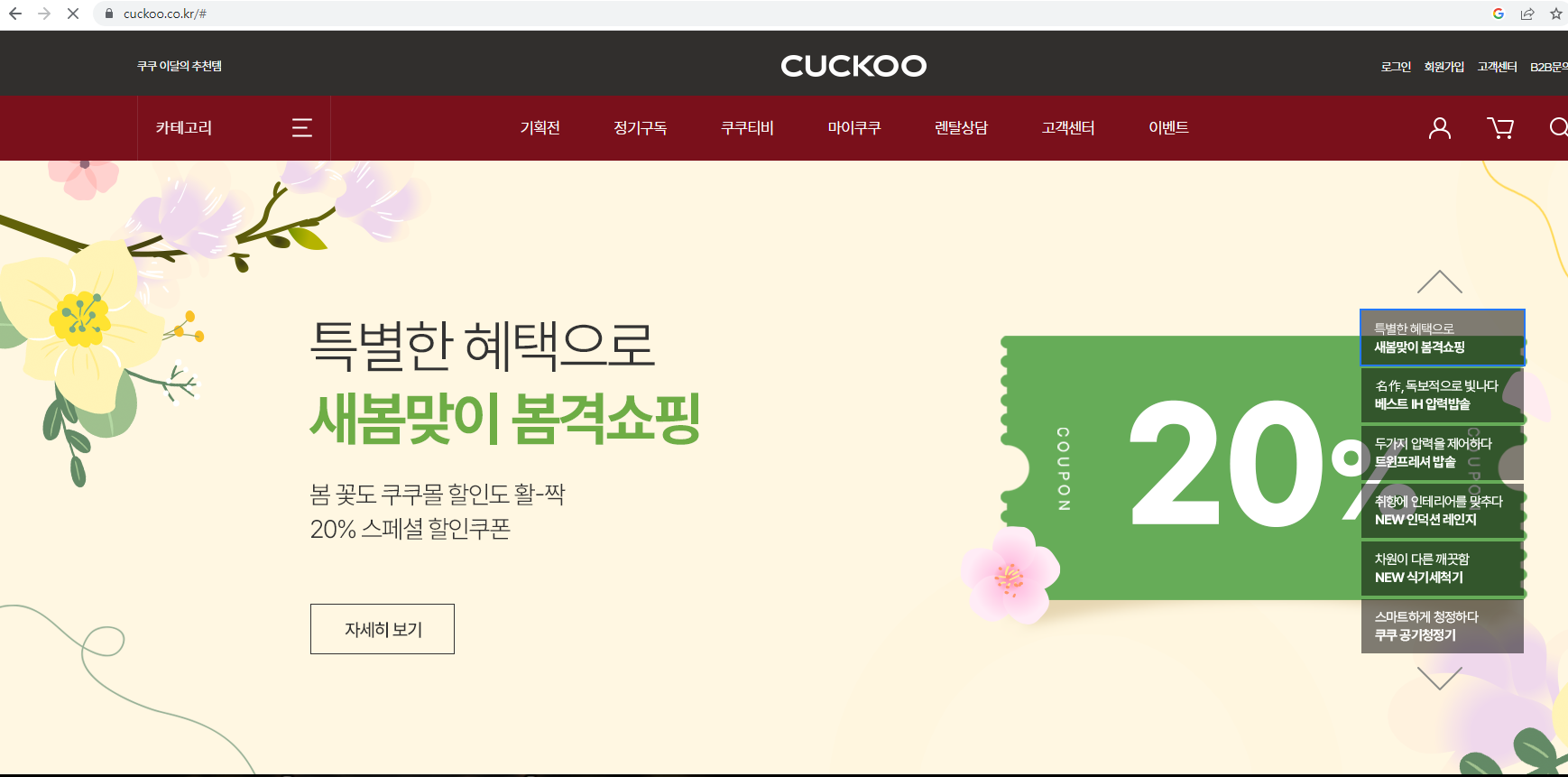 쿠쿠 홈페이지 https://www.cuckoo.co.kr/#